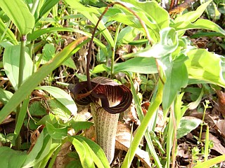 平成22年4月3日 吉祥山では、春の花が咲き始めました。 山中では、ミヤマシキミやコクサギ、ナツトウダイ、モミジイチゴ、ウリカエデ、スルガテンナンショウなどがいい時季を迎え、これからモチツツジやヤマツツジ、ホウチャクソウ、フモトスミレ、アケビなどが次々に咲き始めるでしょう。 また、葉が開く前のヤブレガサも、その名のとおりの姿を見ることができました。 |