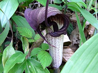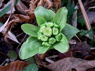 | 平成22年4月3日 吉祥山麓のコケリンドウはあと少し。 カタクリ山では、終りかけのカタクリに代わって、ウラシマソウやムラサキケマン、タチツボスミレ、クサイチゴが咲き始めました。ジロボウエンゴサクやイチリンソウはまだ見頃、ホウチャクソウはこれからのようです。 |