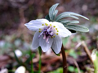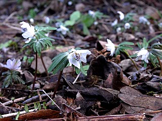| 平成22年2月19日 お待ちかねの吉祥山のミスミソウがようやく開花しました。 毎年楽しみにしているミスミソウが開花しました。まだまだ蕾も多く、まだしばらくは楽しめそうです。 盗掘は以ての外ですが、踏みつけに遭った株も多く見られます。ミスミソウの蕾は目立たないため、くれぐれも足下には気をつけたいものです。 |