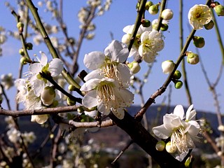 | 平成22年2月13日 マンサク群落や三ケ日桜で有名な旧三ケ日町鵺代の乎那の峯ではマンサクが見ごろを迎えています。 マンサクは、見た目に美しいというような派手な花ではありませんが、無数の小さな花が、山肌を淡い黄色に染めている光景は春らしくていいものです。 この日は天気もよく、乎那の峯の山頂からは、奥浜名湖は勿論、浜松駅前のアクトタワーまではっきりと確認することができました。 |