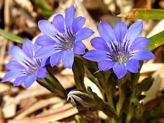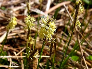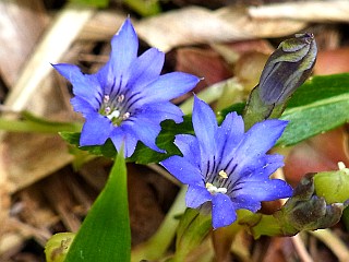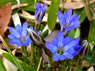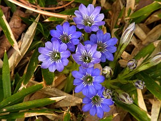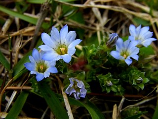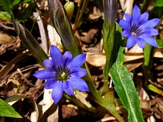 平成23年4月18日 ようやくコケリンドウガ咲き始めた吉祥山麓 吉祥山麓ではようやくコケリンドウが咲き始めました。訪れた時は曇りであきらめて帰るところでしたが、その後太陽が出てくると、あちらこちらで、みるみるうちに小さなコケリンドウが開き始めました。 |