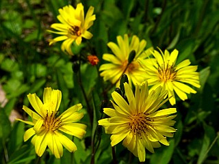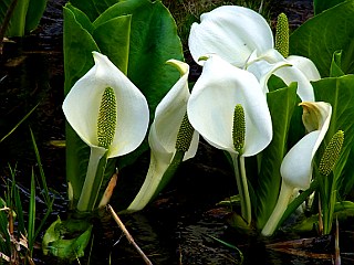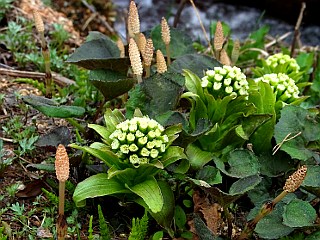 平成23年5月7日 道端にいろいろな花の咲く白馬村 白馬村では、道端にミズバショウやザゼンソウ、キクザキイチゲ、カタクリなどが咲いています。落倉自然園でもミズバショウやショウジョウバカマ、エンレイソウ、フッキソウなど賑やかです。 |