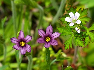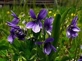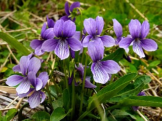| 平成23年5月4日 次々と春の花が咲く宇利城址近く 宇利城址近くでは、ハルリンドウやイカリソウに加えシライトソウやニョイスミレなど次々といろいろな花が咲き始めています。 |