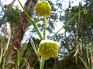 平成23年4月3日 今年も咲いた富岡のバイモ 昨年教えてもらった、新城市富岡では、今年もバイモが咲いていました。 |