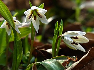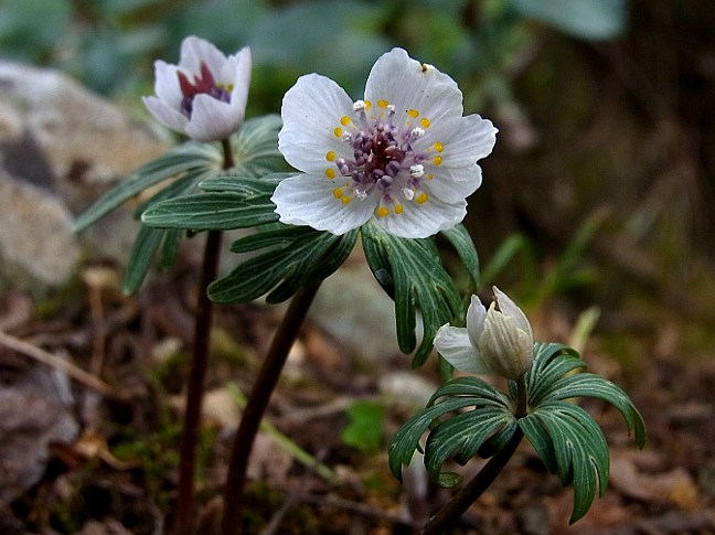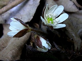 平成23年2月26日 ようやく咲いたミスミソウ ようやく吉祥山でもミスミソウが咲き始めました。先週来た時には蕾すら見つけることができませんでしたが、今年もちゃんと その姿を見せてくれました。 その外にもアセビやミヤマシキミなどの早春の花が咲き始め春本番まであと少しです。 こちらもご覧ください。 |