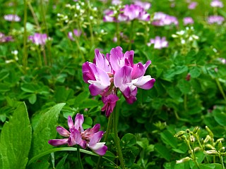 | 平成23年4月18日 本格的な春の花のシーズンを迎えた宇利城址近く 宇利城址近くでは、まだまだハルリンドウが咲いており、外にもいろいろな春の花が咲き競っています。 |