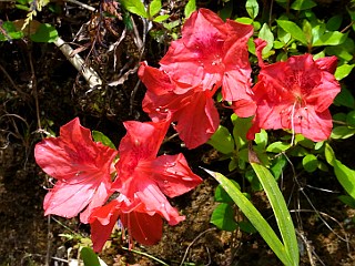 | 平成23年4月28日 春の花が真っ盛りの宇利城址近く 宇利城址近くでは、そろそろハルリンドウも咲き終わりそうですが、次々といろいろな花が咲き、これからも楽しみです。 |