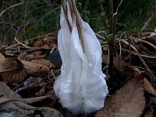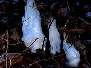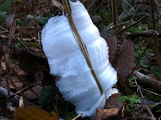 | 平成23年1月7日 やっとシモバシラの霜柱を見ることができた吉祥山 この冬何度か通っても見られなかったシモバシラの霜柱をようやく見ることができました。まだまだシモバシラが付いていない株も多いことから、寒波が来ればまだまだ見ることができそうです。 こちらもご覧ください |