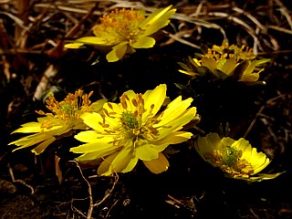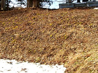 平成25年3月9日 フクジュソウが咲き始めた大町市新行 信州の大町市新行では、まだ雪の多く残る田圃の畦でフクジュソウが咲き始めました。気持ちのいい青空の下、フクジュソウの明るい黄色の花は、まるできらきらとと輝いているようでした。 |