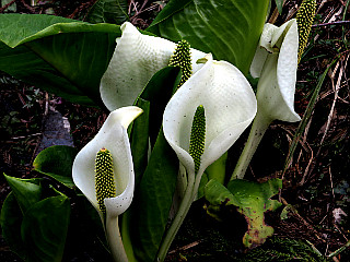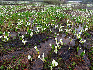 | 群生するミズバショウ | ミズバショウ | ザゼンソウ |