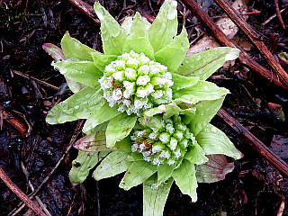 | キクザキイチゲ | まだ蕾のリュウキンカ | フキ |