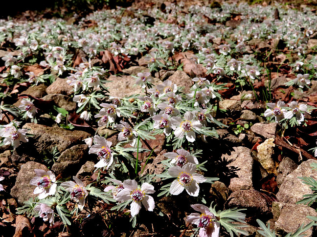| 令和5年2月14日 セツブンソウが満開の石雲寺と池場地区 石雲寺や池場地区では、いたる所でセツブンソウが咲き、最盛期を迎えていました。 |