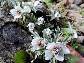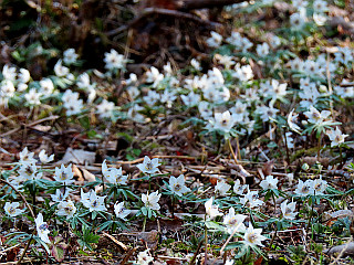 | 令和6年2月2日 セツブンソウが満開の石雲寺とまだ蕾が多い池場地区 池場地区のセツブンソウ群生地では、まだ蕾が多く、満開まで後少しという感じでした。ただ、柵の無い群生地では、写真愛好者による踏み荒らしが心配されます。 次に行った石雲寺ではセツブンソウが満開で、ロウバイやウメもいい感じでした。 |