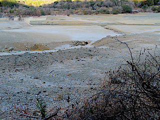 | 令和8年1月10日 シモバシラの霜柱が見られた五葉湖畔 平地でも気温が零下になるというこの日、シモバシラの霜柱の様子を観るために五葉湖畔へ行ってみました。結局、前回よりは大きなものを観ることができましたが、雨不足で吸い上げる水が少ないためか、大きなものを観ることはできませんでした。 また、五葉湖の湖面はますます下がってきたようです。 |