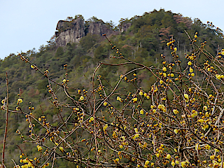 | 通路が整備された石雲寺 | 石雲寺から観たロウバイと獅子岩 | ||