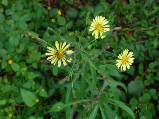 ホソバアキノノゲシ(20061021)キク科 吉祥山中では葉に切れ込みのあるアキノノゲシよりもよく見かける。 |