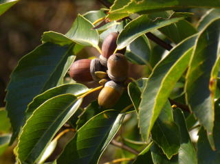 | コナラの実(20070927) 雑木林の主役。小さめの可愛いドングリができる。 |