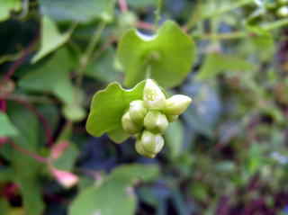 ヤマノイモの実(20070927)ヤマノイモ科 別名ムカゴと言って食べられる。根はもちろん自然薯だ。 |