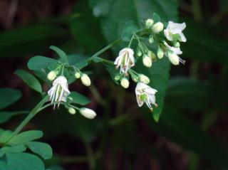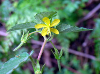 | カラスノゴマ(20071003)シナノキ科 この年初めて吉祥山で見ることができた。葉の下に花が付くので今まで気が付かなかったのかも。 |