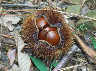 クリの実(20071003)ブナ科 吉祥山ではこれを食べる動物がいないのか、きれいな実がいっぱい転がっている。 |