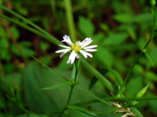 サワシロギク(20070917)キク科 湿ったところに咲く。葉が細く弱々しい。花の咲き終わり頃になると花びらが赤みを帯びてくる。 |