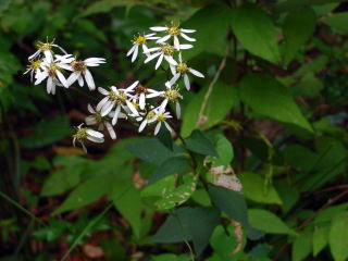シラヤマギク(20060930)キク科 やや暗いところに咲く。他の野菊と比べ舌状花が疎ら。 |