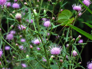 タムラソウ(20060917)キク科 アザミに似ているが葉に棘がない。吉祥山では散発的に咲いているのを見る。 |
