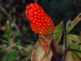| スルガテンナンショウの実(20061115)サトイモ科 花は各所で見かけるが、実が赤く熟しているのはなかなか見ることができない。 |