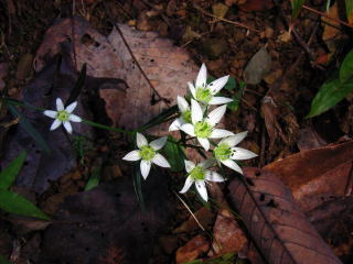 | アケボノソウ(20061021)リンドウ科 湿った場所に咲く。花びらは蜜が分泌されるのか開花したての頃は何時も蟻が集っている。 |