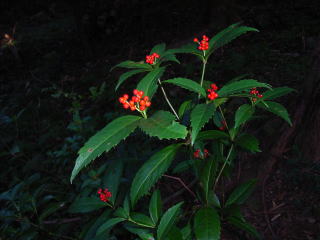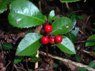 ミヤマシキミ(20061125)ミカン科 吉祥山では特にAコース沿いに多い。赤い実はとても目立つ。 |