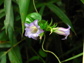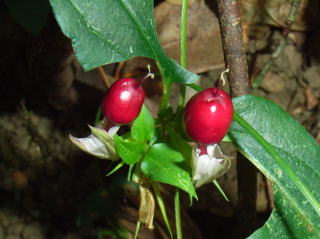 ツルリンドウ(20060930)リンドウ科 吉祥山中ではいたるところで見ることができる。意外と美しい花だ。花後真っ赤な実になる。 |