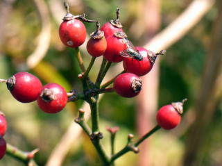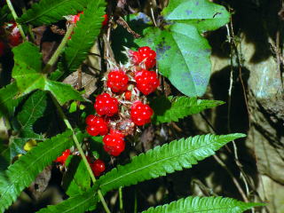 フユイチゴの実(20061125)バラ科 赤い実が冬でも見られる。小さいが美味しそうな実だ。 |