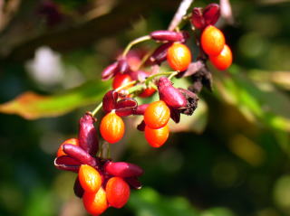 ツルウメモドキの実(20071124)ニシキギ科 黄色い殻と赤い実の色合いが可愛いのでよく家の飾り物にされる。 |
