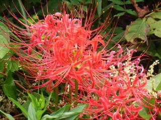 | ヒガンバナ(20070927)ヒガンバナ科 秋の彼岸ごろになると一斉に咲く花。吉祥山でも各所で咲いている。 |