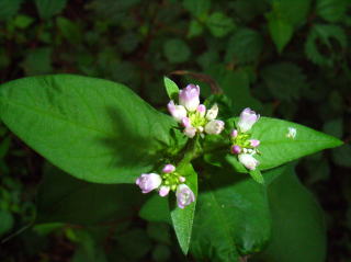| ミゾソバ(20071003)タデ科 花はママコノシリヌグイに似るが、葉は牛の顔のような形をしている。 |
