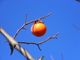 | ヤマガキの実(20061115)カキノキ科 実はよくなる年と殆どならない年がある。いかにも美味しそうだが食べられるかどうかは知らない。 |