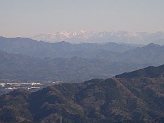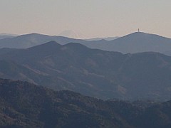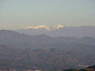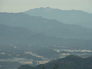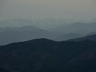 | 昨日登った三ツ瀬明神山には雪が見える | 少し霞んで見える南アルプスの山々 | 奥三河の山々 |