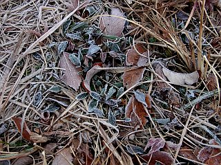 | 霜の下りた落葉 | ヤブコウジ | フユイチゴ |