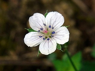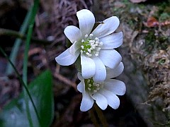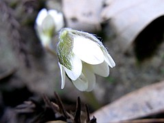 林道ゲート→林道ゲート | ミスミソウが開花しました。 お待ちかねのミスミソウが開花しました。毎年見せてくれる小さく可憐な花は、見る人の心を癒してくれます。気になったのは、踏まれた蕾が目立ったことです。咲いているミスミソウに気をとられ、知らないうちに目立たない蕾を踏んでしまうのでしょうが、これもミスミソウが存続していくためには大きな脅威となります。私も含め、ミスミソウを探すときにはくれぐれも足下に神経をめぐらせ、少なくとも、花を楽しむ人によってその数を減らすようなことのないよう、この可愛い早春のメッセンジャーを守っていきたいものです。 |