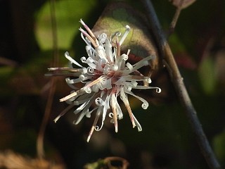 林道ゲート→林道ゲート | 期待したシモバシラの霜柱を見ることができなかった吉祥山。よく冷え込んだこの日、シモバシラの霜柱が見られないかと足を運んでみましたが、残念ながら空振りで、富士山も見ることもできず、今年最後の吉祥山は、寂しい山歩きとなりました。 アオツヅラフジ(実)、アキノタムラソウ、コウヤボウキ(実)、サルトリイバラ(実)、スズカアザミ、ススキ、スルガテンナンショウ(実)、ツルアリドオシ(実)、ノイバラ(実)、ノコンギク、ヒイラギ、ヒサカキ(実)、フユイチゴ(実)、メギ(実)、ヤブコウジ(実)、ツルリンドウ(実) |