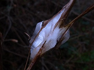 | シモバシラの霜柱が茎の上部に付いていた | |||||