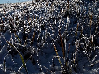 林道ゲート→林道ゲート | 大雪と霧氷の吉祥山 雪で交通機関が大混乱したこの日、雪の吉祥山を見に行きました。大雪後まだ人の入らない吉祥山は、10cmぐらいの雪が積もり、新雪を踏みながら見事に雪化粧をした光景を独り占めでした。さすがにシモバシラの霜柱は、出ているのか出ていないのかががわからない程雪がかぶっていましたが、山頂では思いがけず、綺麗な霧氷を見ることができました。もう二度と見ることができないかもしれない吉祥山の姿を、しっかりと目に焼き付けてきました。 |