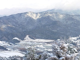 | 雲の下に見える南アルプスの稜線 | 雪を纏った本宮山 | 前日の大雪もそれ程残っていない | |||