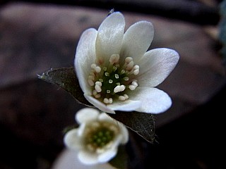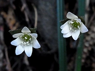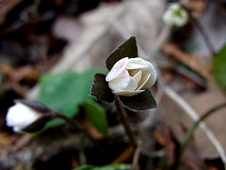 林道ゲート→林道ゲート | ようやく開花したが絶滅が危惧される吉祥山のミスミソウ 前日今にも咲きそうなミスミソウを見たので、そろそろ咲いたのではないかと思い、妻と一緒に見に行った。思ったとおり、ミスミソウはその可憐な花を健気に開かせていました。しかし、その数は少なく、盗掘の生々しい跡も見られました。なんとかこの可憐な春の使者がこの吉祥山から消えて無くならないように守っていきたいものです。 |