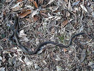 林道ゲート→林道ゲート | 2013年の初日の出を迎えた吉祥山 2013年の初日の出は、少し雲があったものの、綺麗に見ることができました。また、富士山もくっきりと見え、シモバシラの氷結現象も見られました。おまけに、普通なら冬眠しているはずのシマヘビを見ることができたのは、巳年の始まりとしては出来過ぎな感じでした。 |