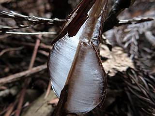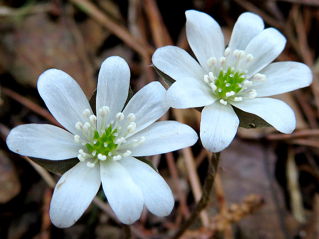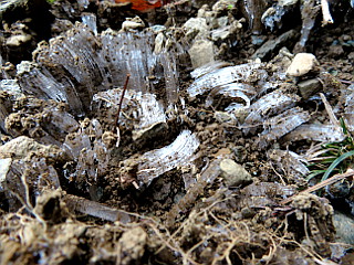林道ゲート→(A)→(B)→林道ゲート | なかなかシモバシラの霜柱が見られないが、ミスミソウが咲き始めた吉祥山 吉祥山へ行く前に大原調整池へ寄りましたが、限られた場所で、大きくはありませんがシモバシラの霜柱を見ることができ、期待して吉祥山へ行きました。しかし、吉祥山のシモバシラの霜柱はまだまだといった感じで、すでに次の楽しみであるミスミソウが何株か咲き始めているのを見ると、もう今年は吉祥山ではシモバシラの霜柱を見ることができないのではないかと心配になりました。 |