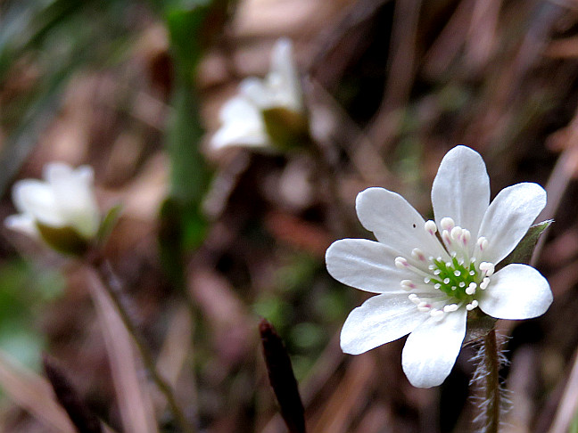 林道ゲート→林道ゲート | ヒメカンスゲやアセビが咲き始めた吉祥山 午後から雨の予報で、早い時間に訪れた吉祥山ですが、いつものところのミスミソウは、ほとんど見つからず心配です。そのかわりに、違う場所に咲くミスミソウがこれから見頃を迎えそうです。その外には、各所でヒメカンアオイが咲き始め、アセビも日当たりのいいところから咲き始めていました。 |