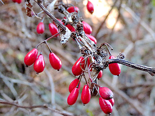 林道ゲート→(C)→(B)→林道ゲート | シモバシラの霜柱はまだまだの吉祥山 前日からの寒波で、シモバシラの霜柱を期待して訪れた吉祥山ですが、まだまだのようで、帰りに五葉湖も寄ってみましたが、こちらも同様にまだまだのようでした。それでも、年末にかけて数十年に一度の寒波に見舞われるというので、それに期待です。一方、花も本当に無くなり、木や草の実も少なくなってきており、次の春が待ち遠しくなる時期です。 |