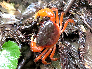 | 山頂の吉祥桜の植樹 | 数箇所で倒木が道を塞いでいた | 雨後なのでサワガニをよく見る | |||