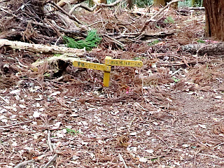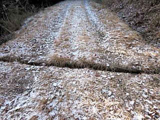 DOCOMO施設→林道ゲート→吉祥山→(B)→(A)→(C)→吉祥天女→西尾根→大谷コース→DOCOMO施設 | シモバシラの霜柱を観ることができなかった吉祥山 前日、前々日と五葉湖でシモバシラの霜柱が観られたので、吉祥山でも捜してみましたが、結局観ることはできませんでした。新城側の林道は工事中で25日まで車両進入禁止です。また、今回は、初めて新城側の大谷コースを歩いてみました。分岐が多くまだ全体は見えませんでしたが、よく整備された歩きやすい道で、また機会があったら違う道を歩いてみたいと思いました。 |